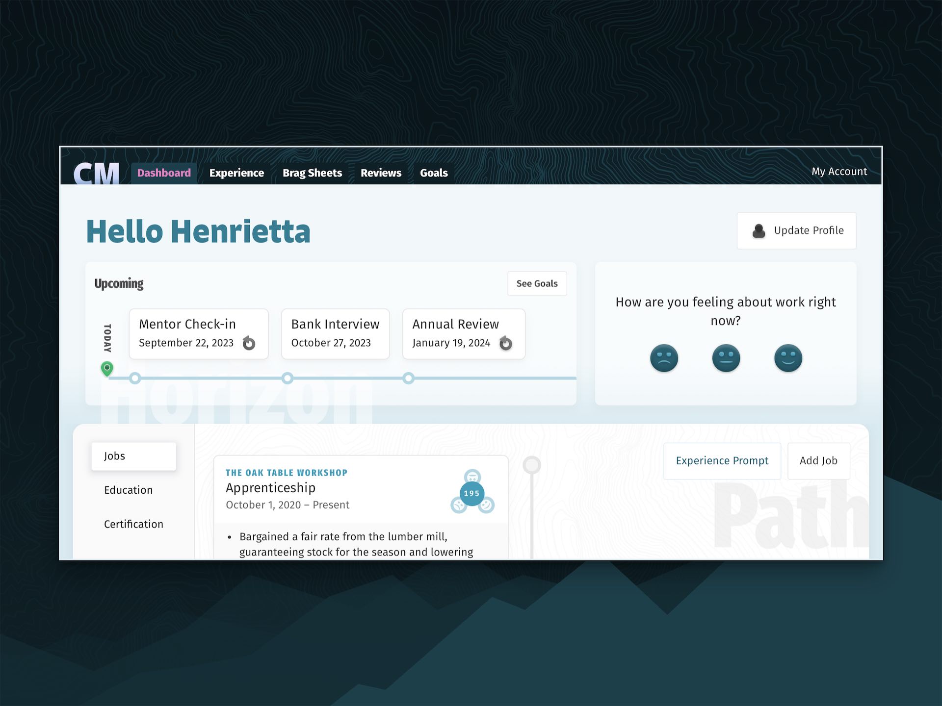 Starting today, you can use Career Minder to prepare for important career related events using Reviews. Now, when you have an upcoming recurring review with your manager or a job interview you can be ready with an up-to-date overview of your most relevant work experience. Reviews also show you how you’ve felt about your work and how that work relates to the goals you’ve set.